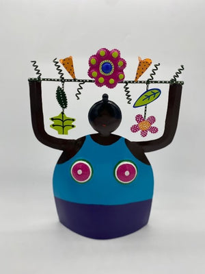 Folk art in metal. Handmade in Colombia. It represents the feminine force that creates and engenders life. It is a version full of color and exuberance that symbolizes Mother Nature.